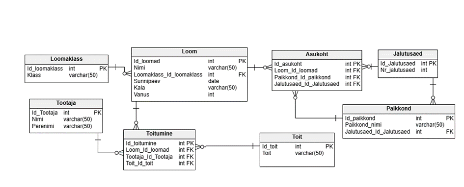 - Loomaklass_Id_loomaklass (FK) – viide loomaklassile
