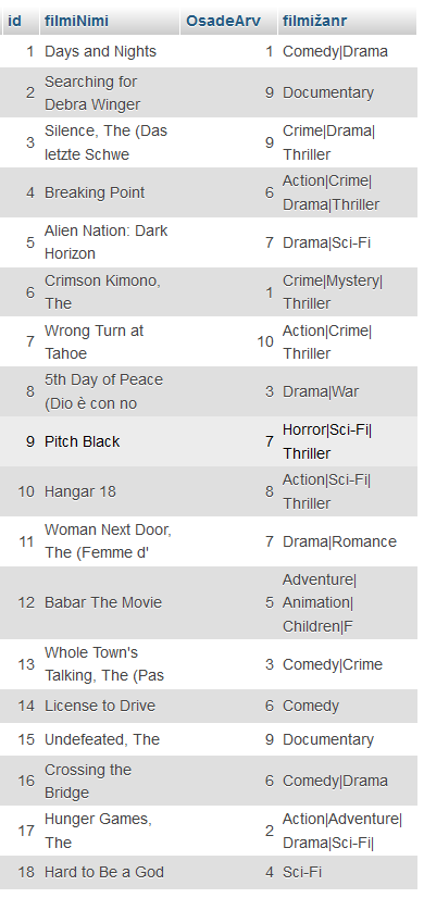 select filmiNimi, OsadeArv, filmižanr from filmid;