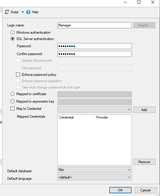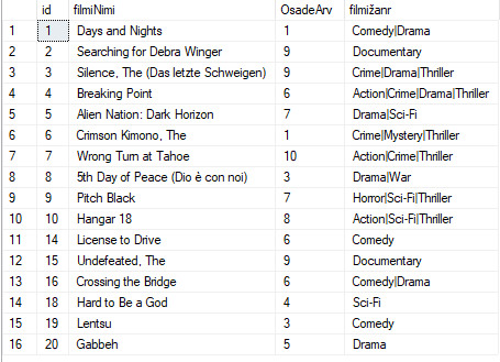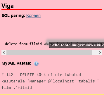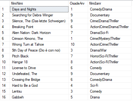 grant Select on filmid (filmiNimi, OsadeArv, filmižanr) to Manager