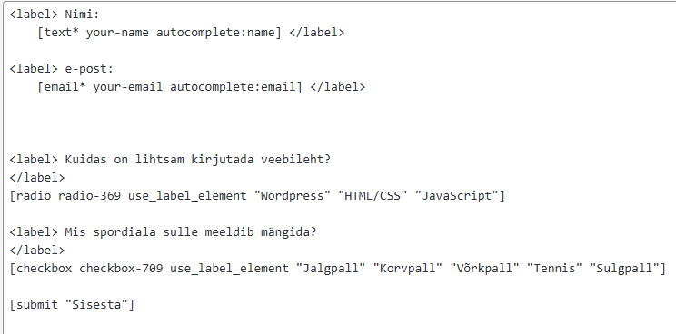 Tagasiside vormi loomiseks kasutame Plugin Contact Form 7